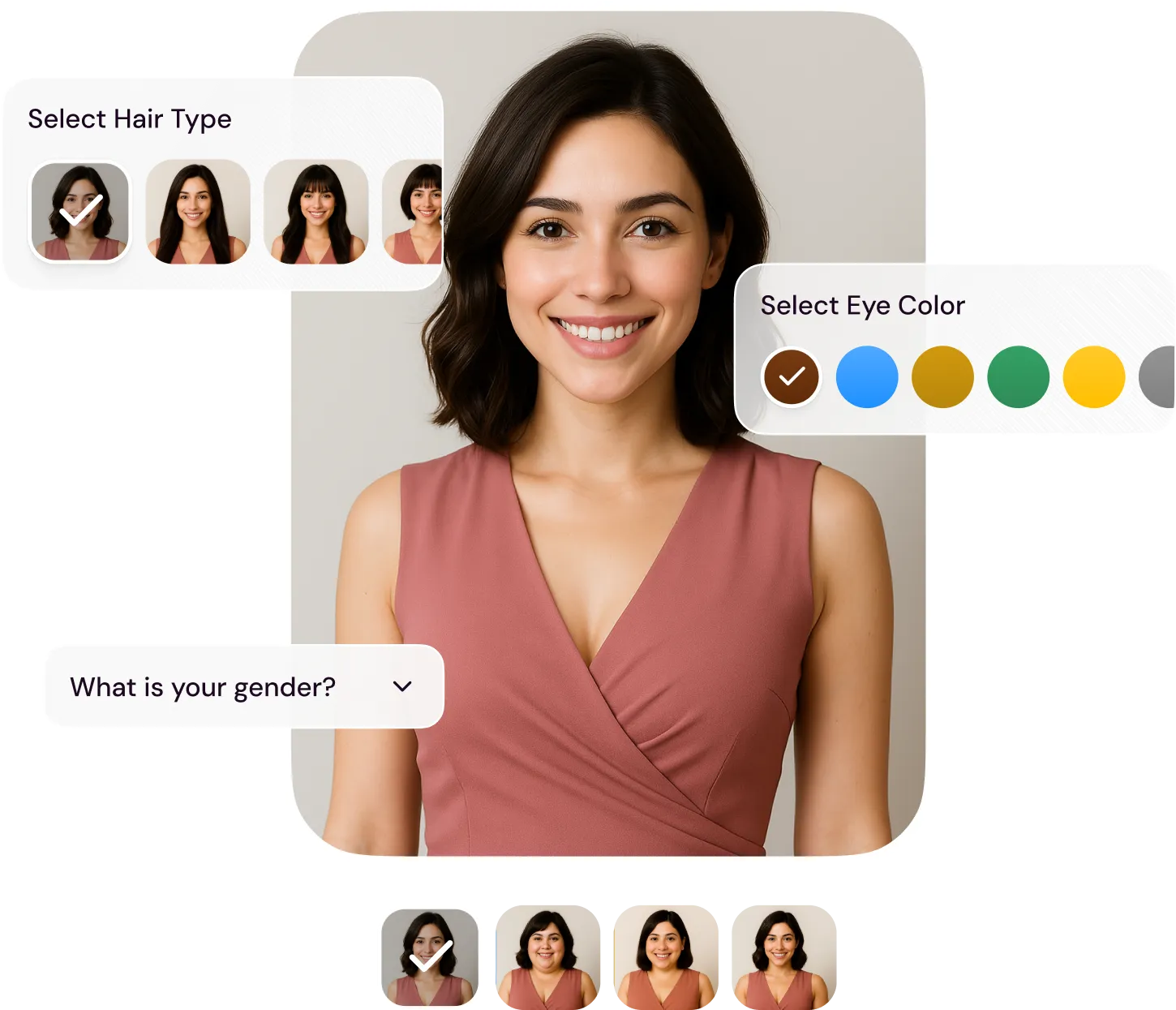 Select your outfit, background, and vibe — you’re in full control of your final style.